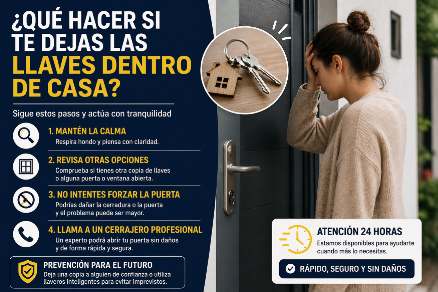 En definitiva, aunque dejarse las llaves dentro de casa es un problema habitual, tiene solución rápida si se actúa correctamente. Contar con un servicio de cerrajería urgente, eficaz y sin roturas es la mejor forma de recuperar el acceso a tu vivienda sin complicaciones.
